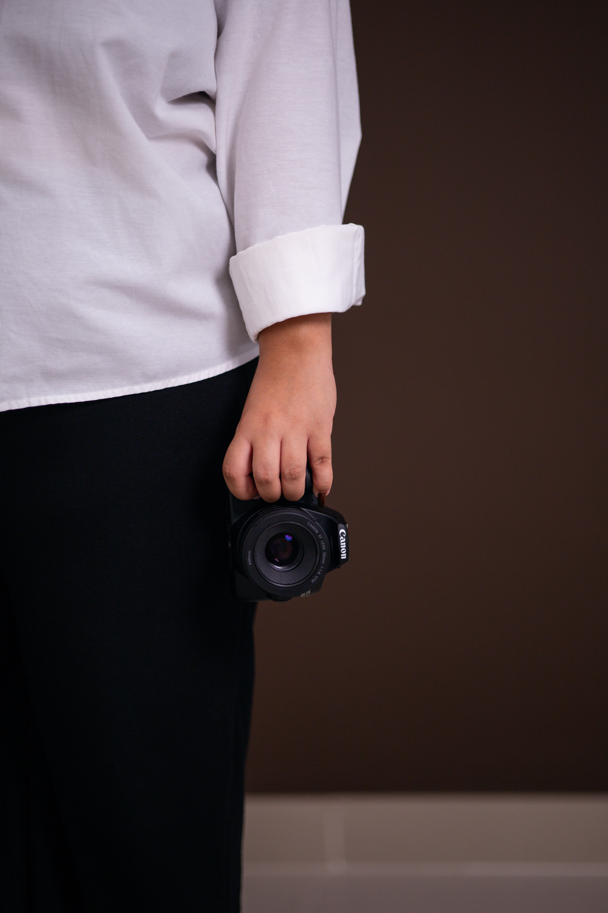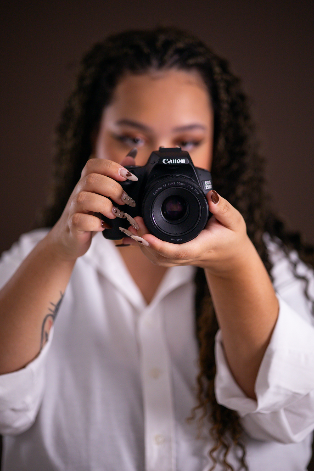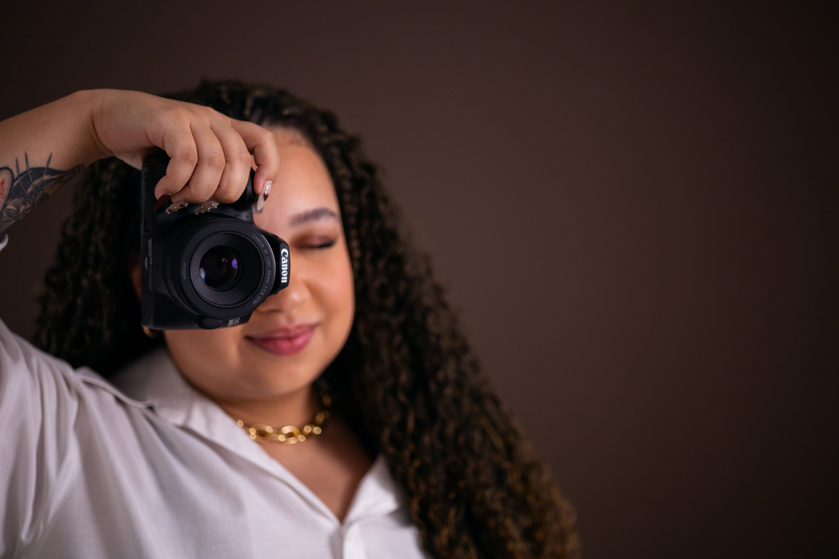 A gente pensou juntos em fotos que representassem tanto a personalidade dela enquanto fotografa quanto a multiplicidade de serviços que ela oferece, como fotografia, vídeo e entrega real-time.